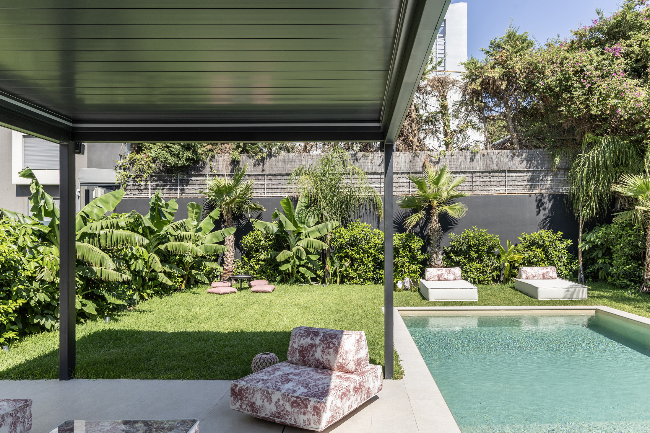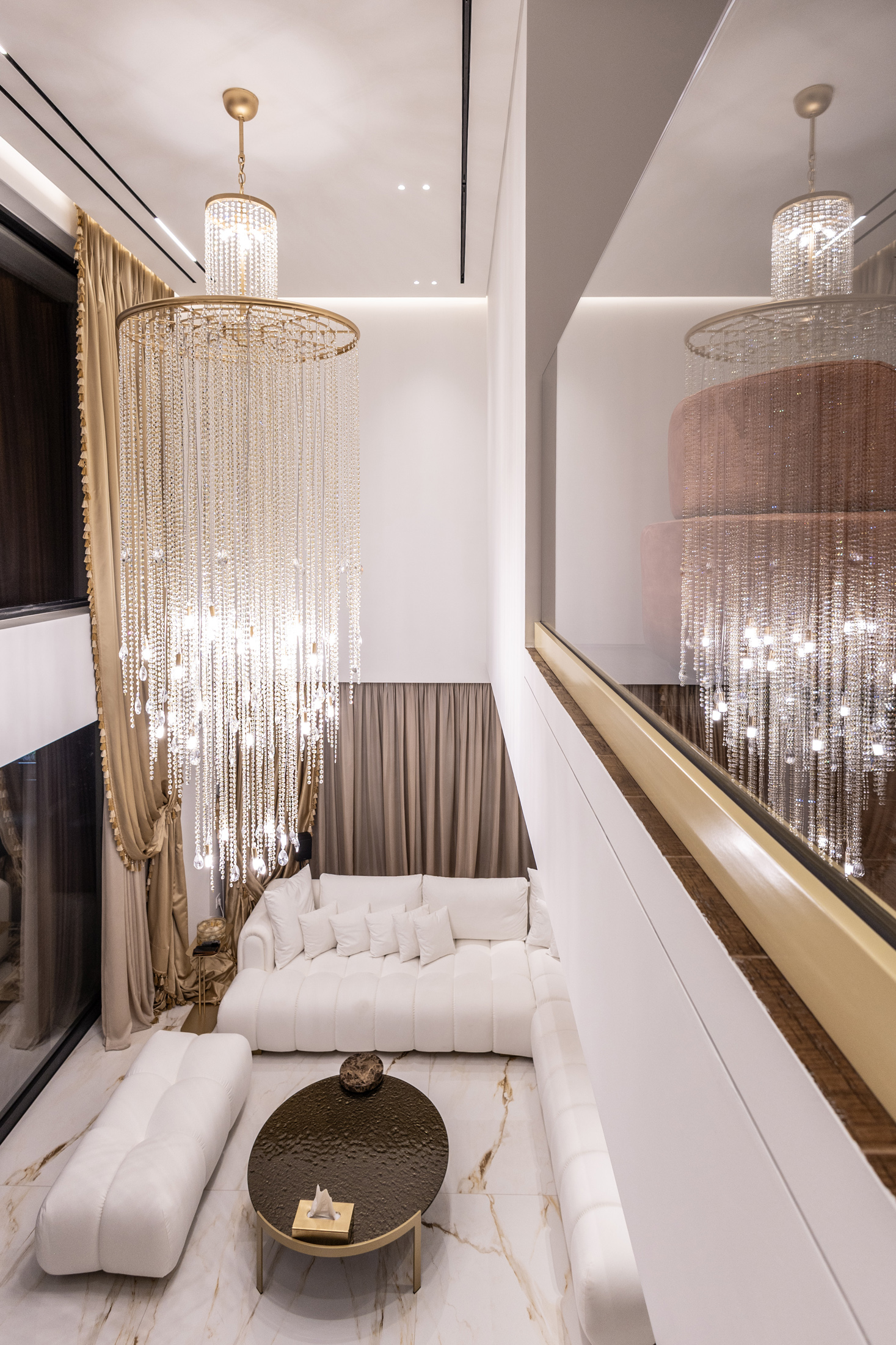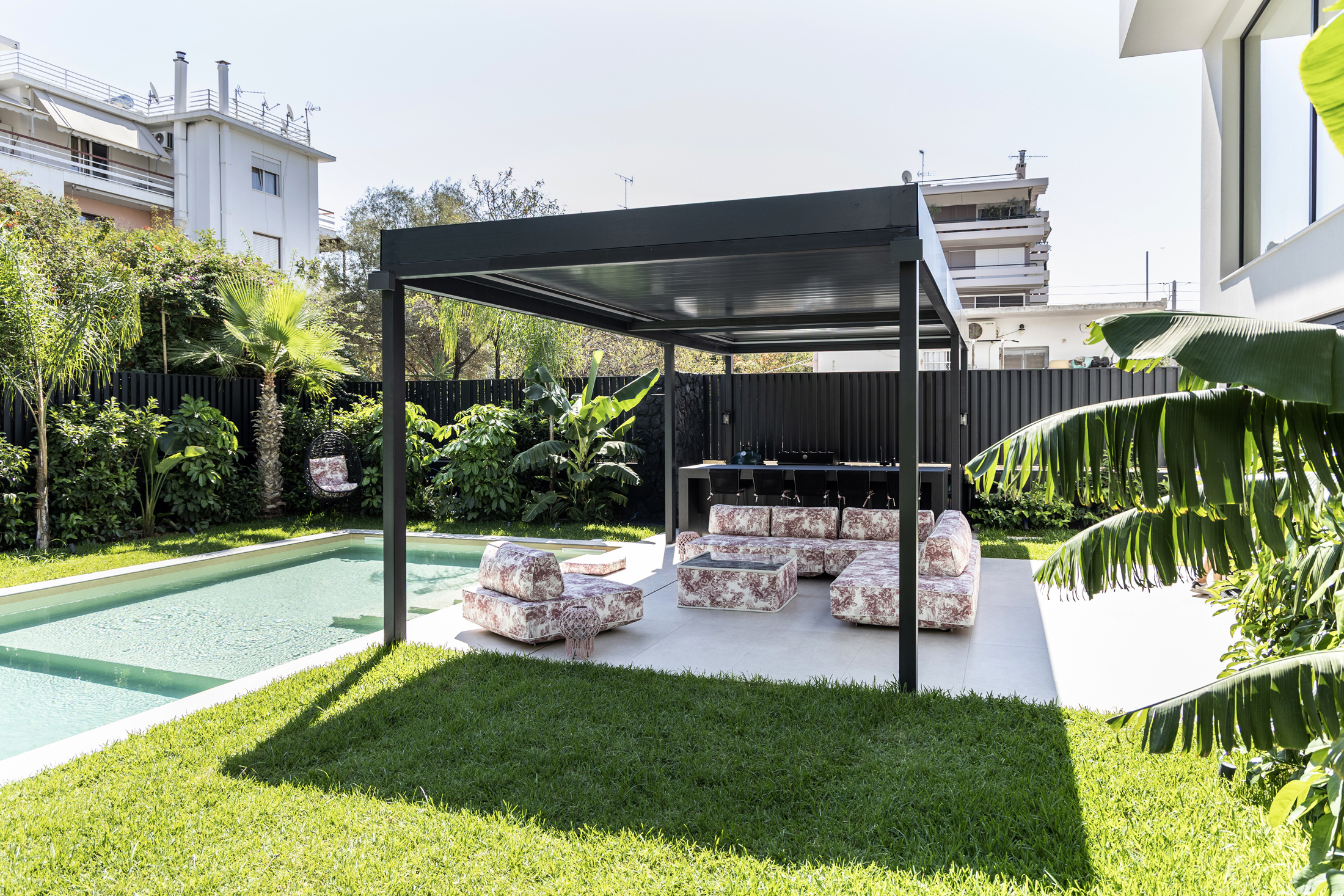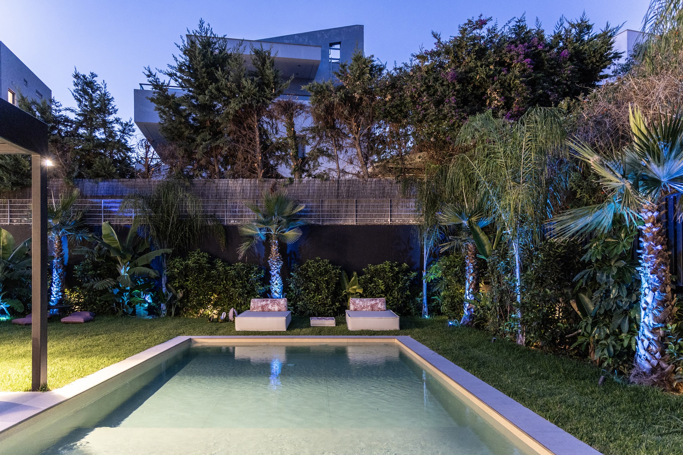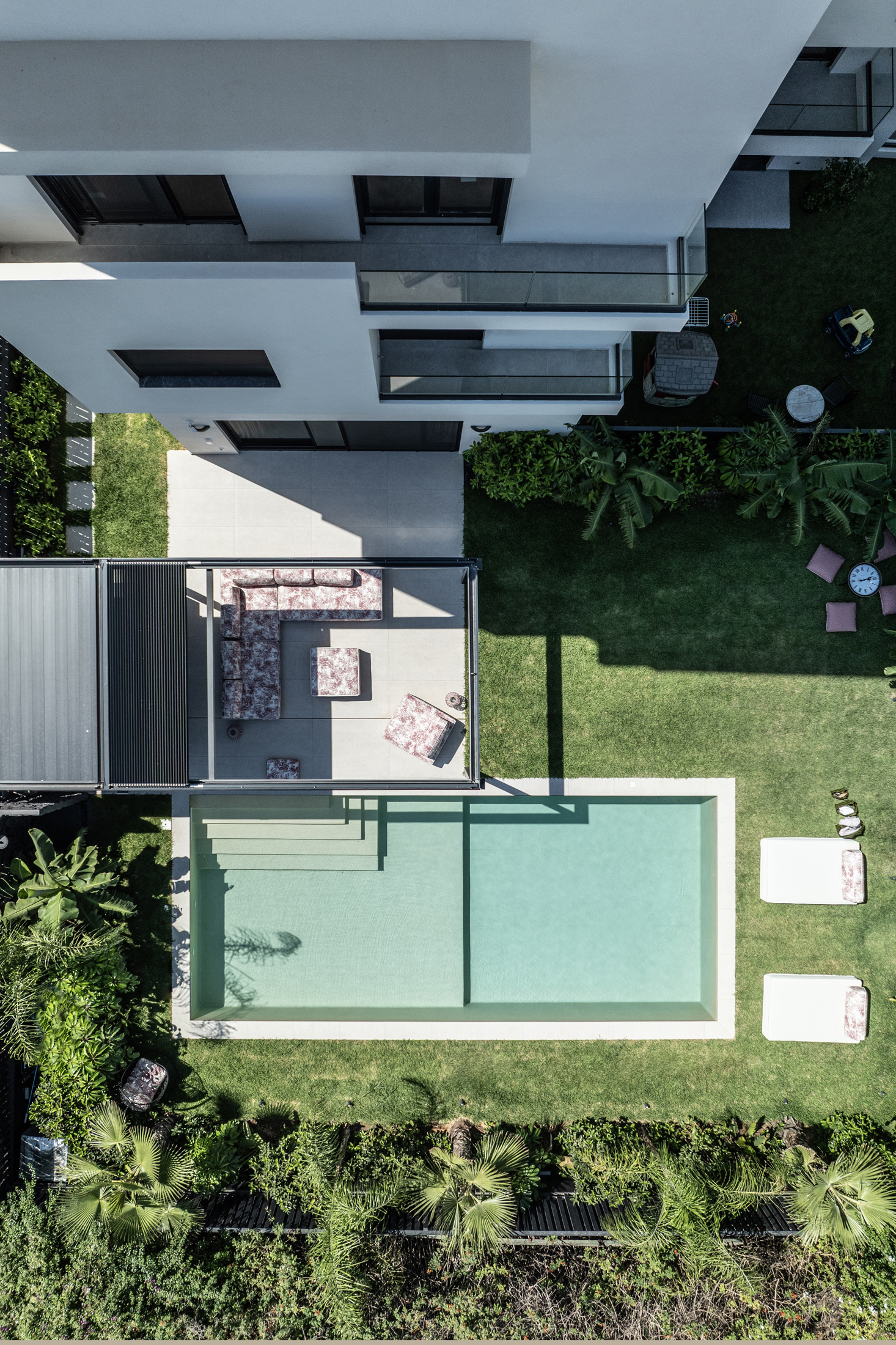 An additional feature integrated into the design is the water element both in private spaces in the form of a swimming pool or hot tub, and in public areas of the building with decorative waterfalls, as part of the design of the surrounding area, improving together with the green surfaces the living conditions in the building.