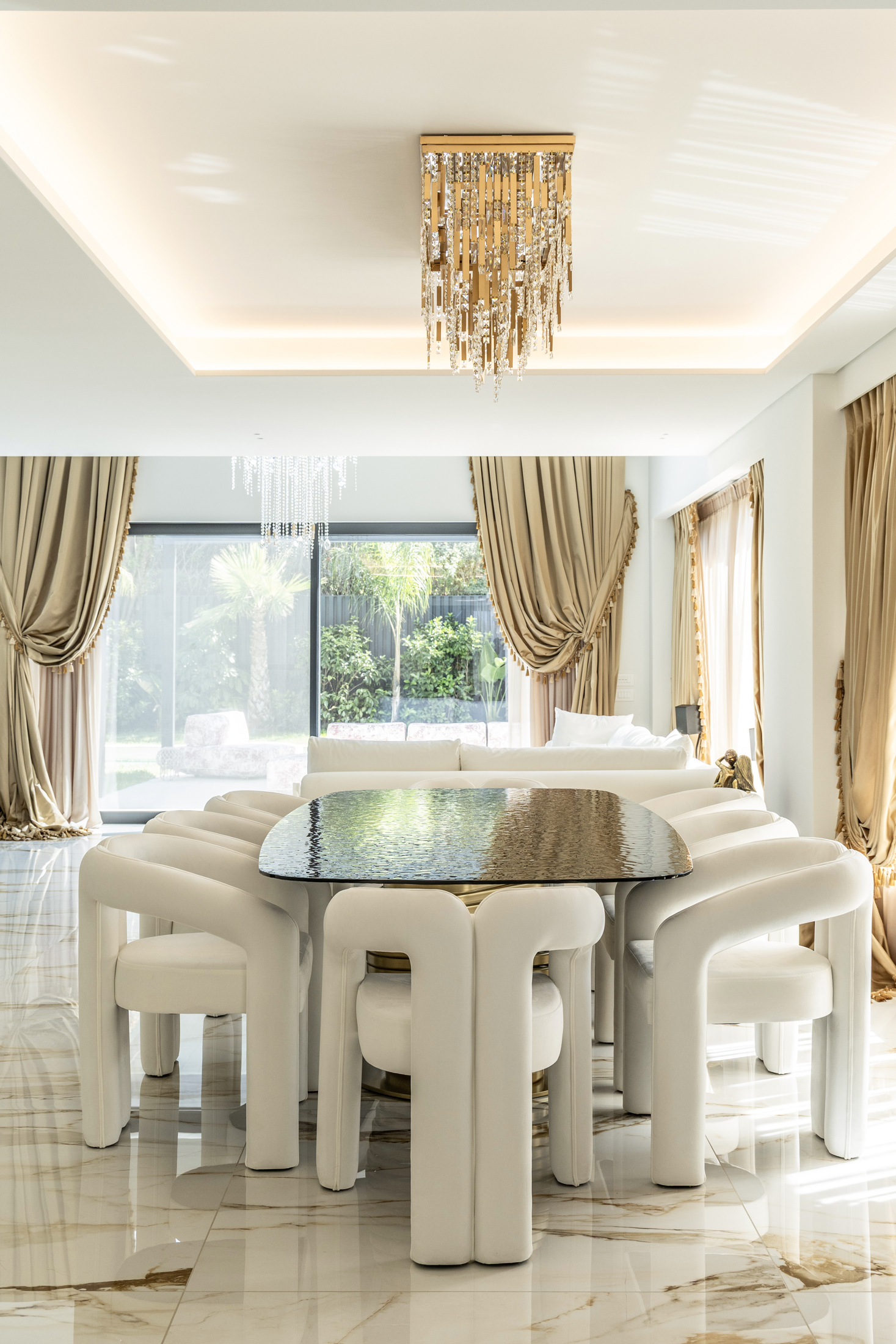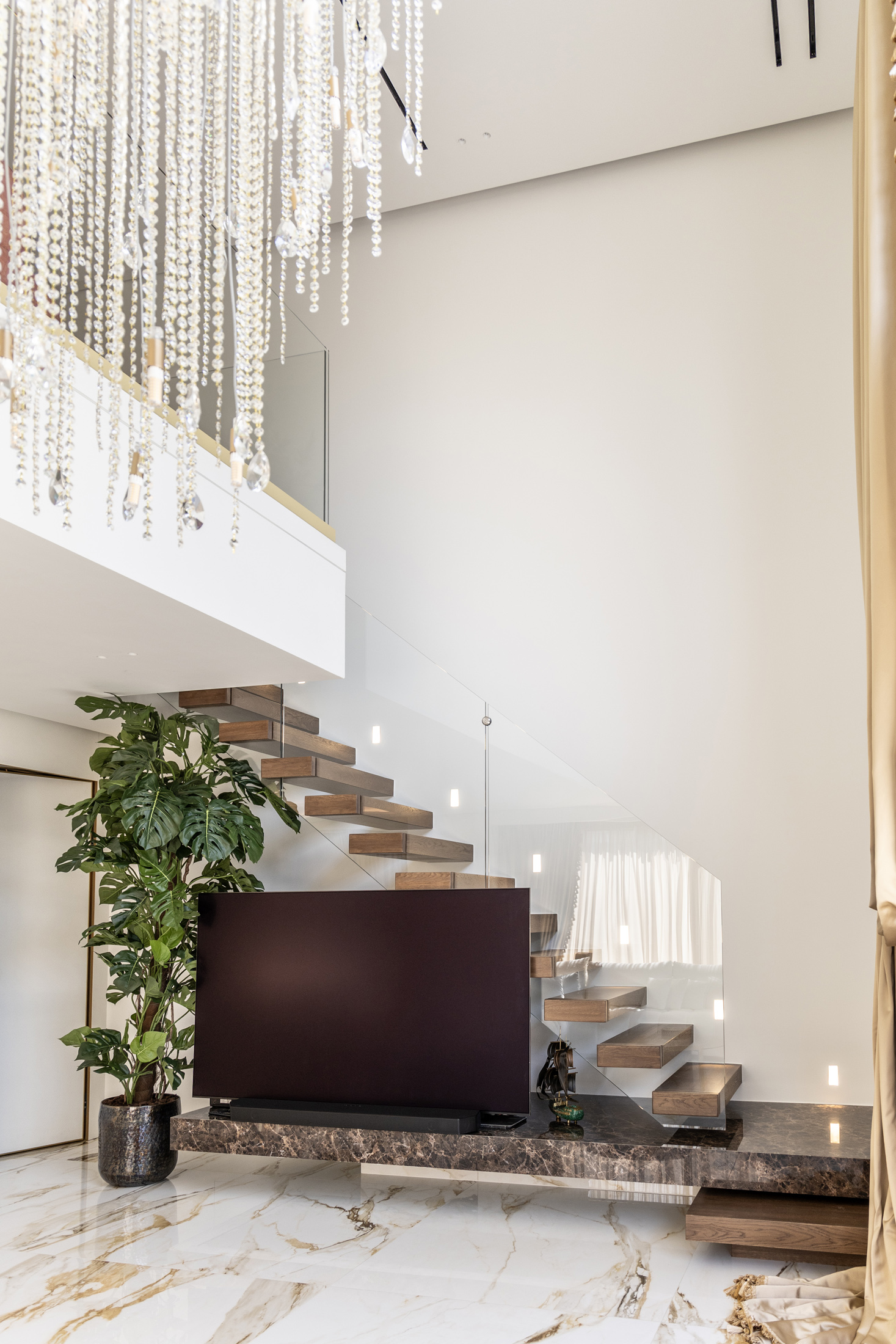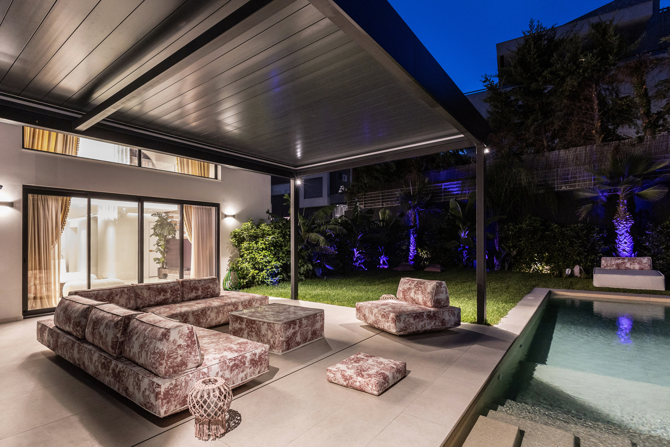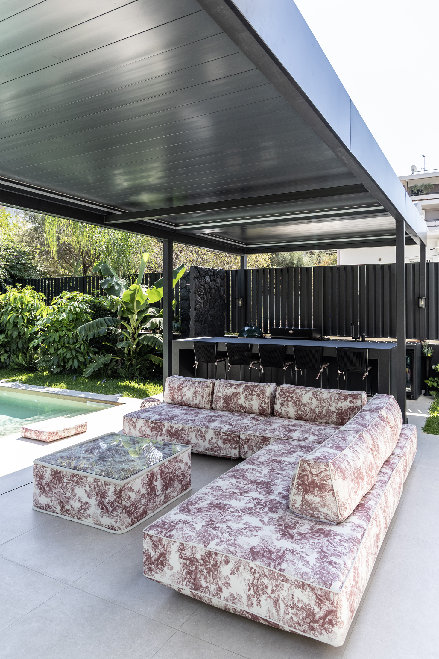 An additional feature integrated into the design is the water element both in private spaces in the form of a swimming pool or hot tub, and in public areas of the building with decorative waterfalls, as part of the design of the surrounding area, improving together with the green surfaces the living conditions in the building.