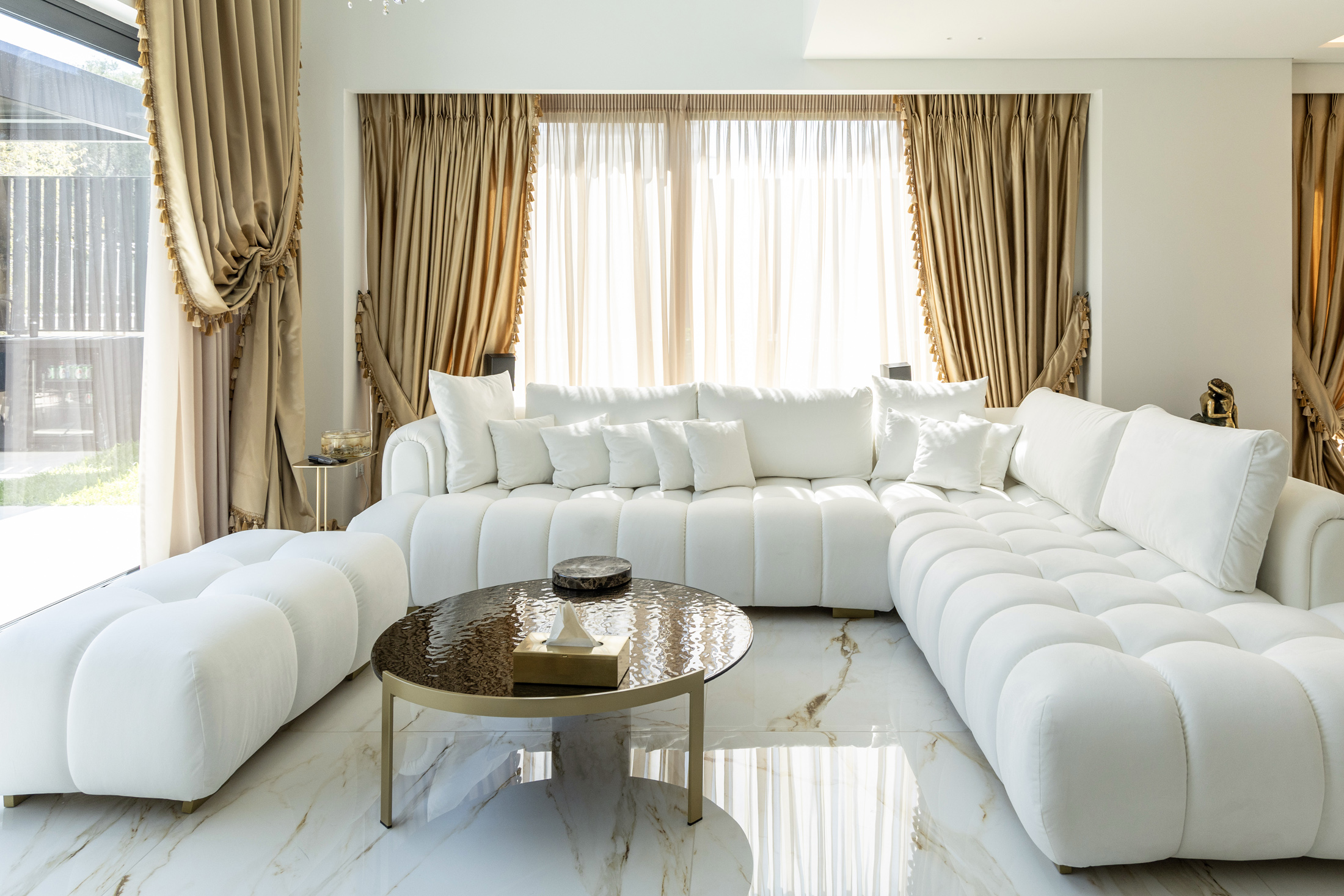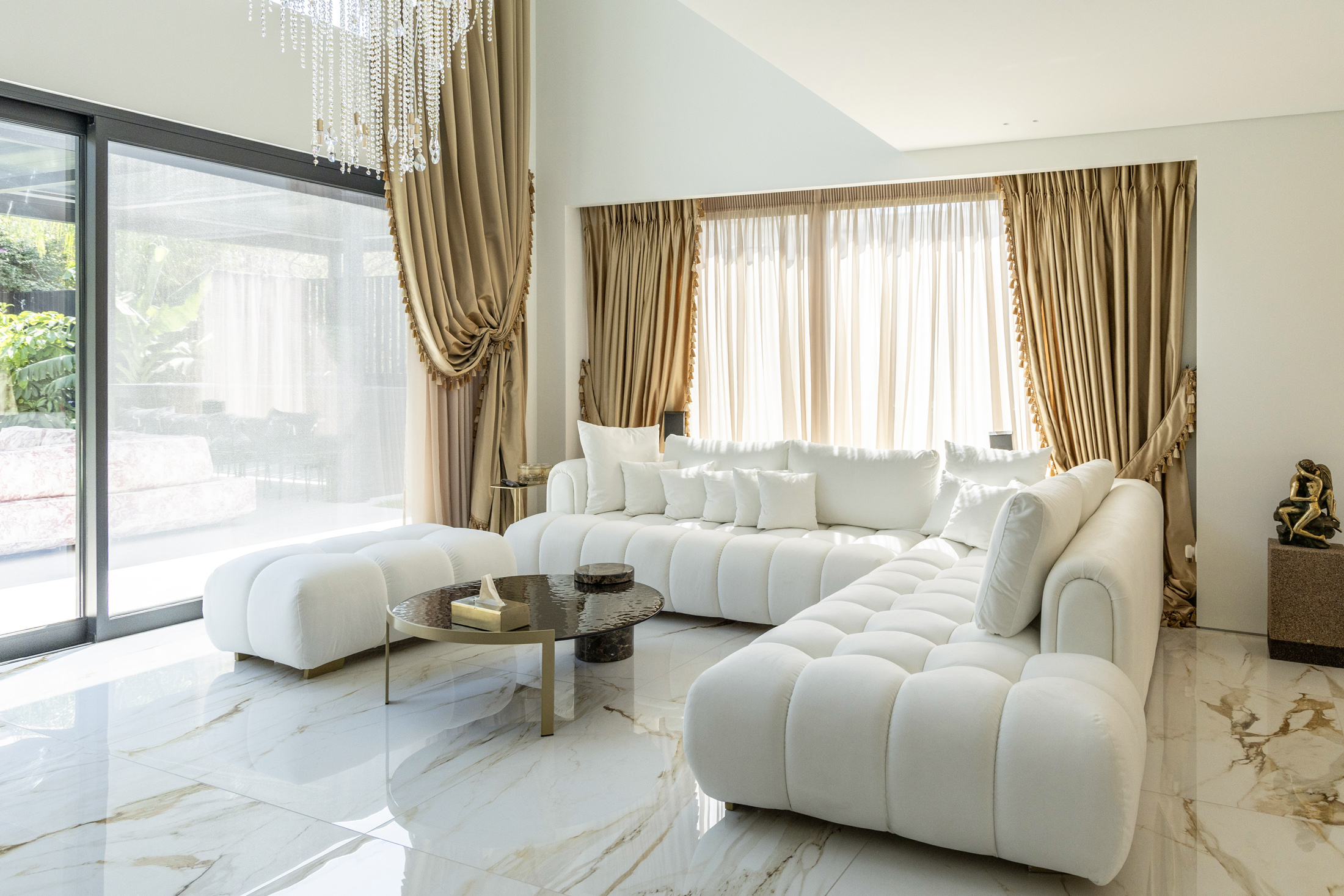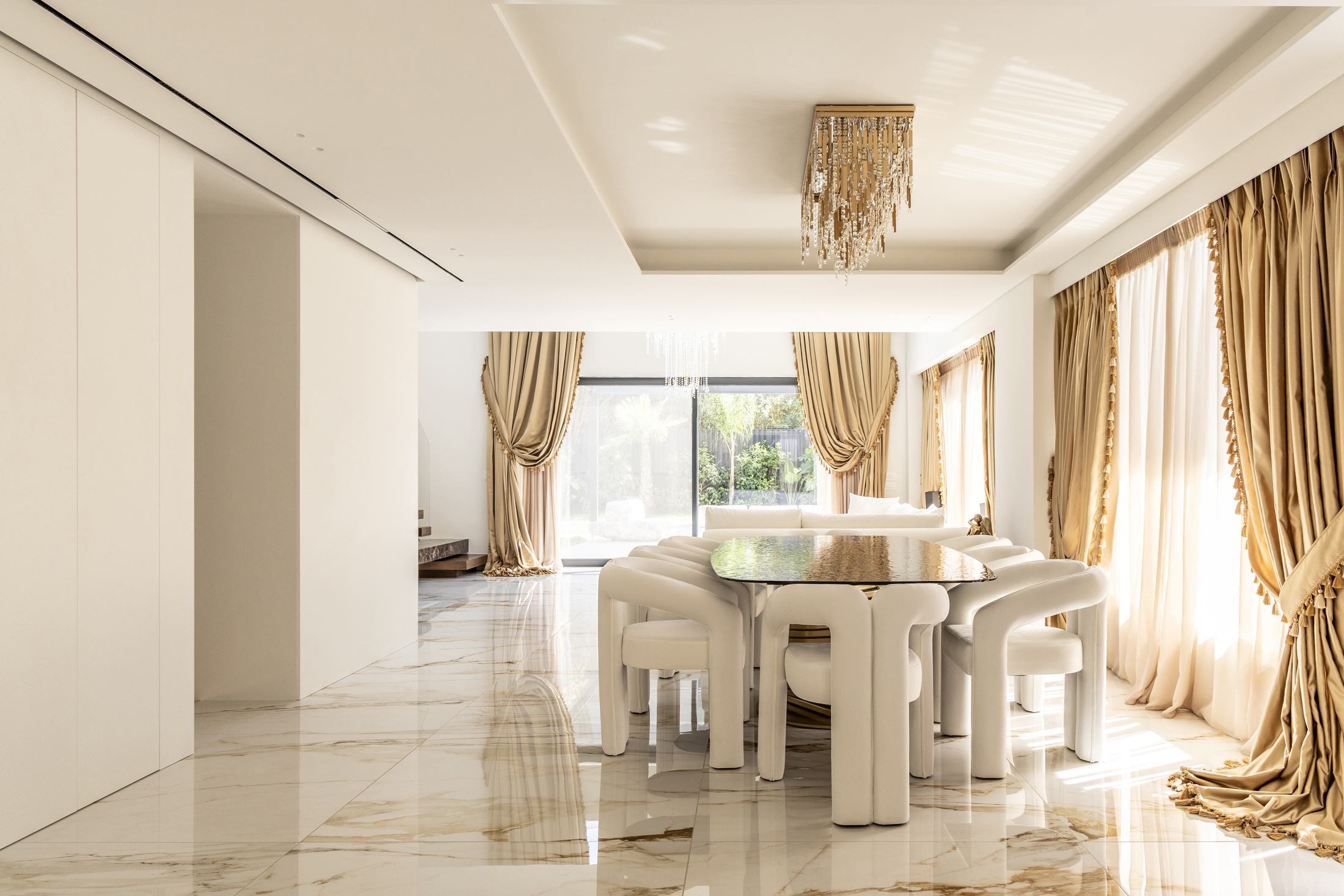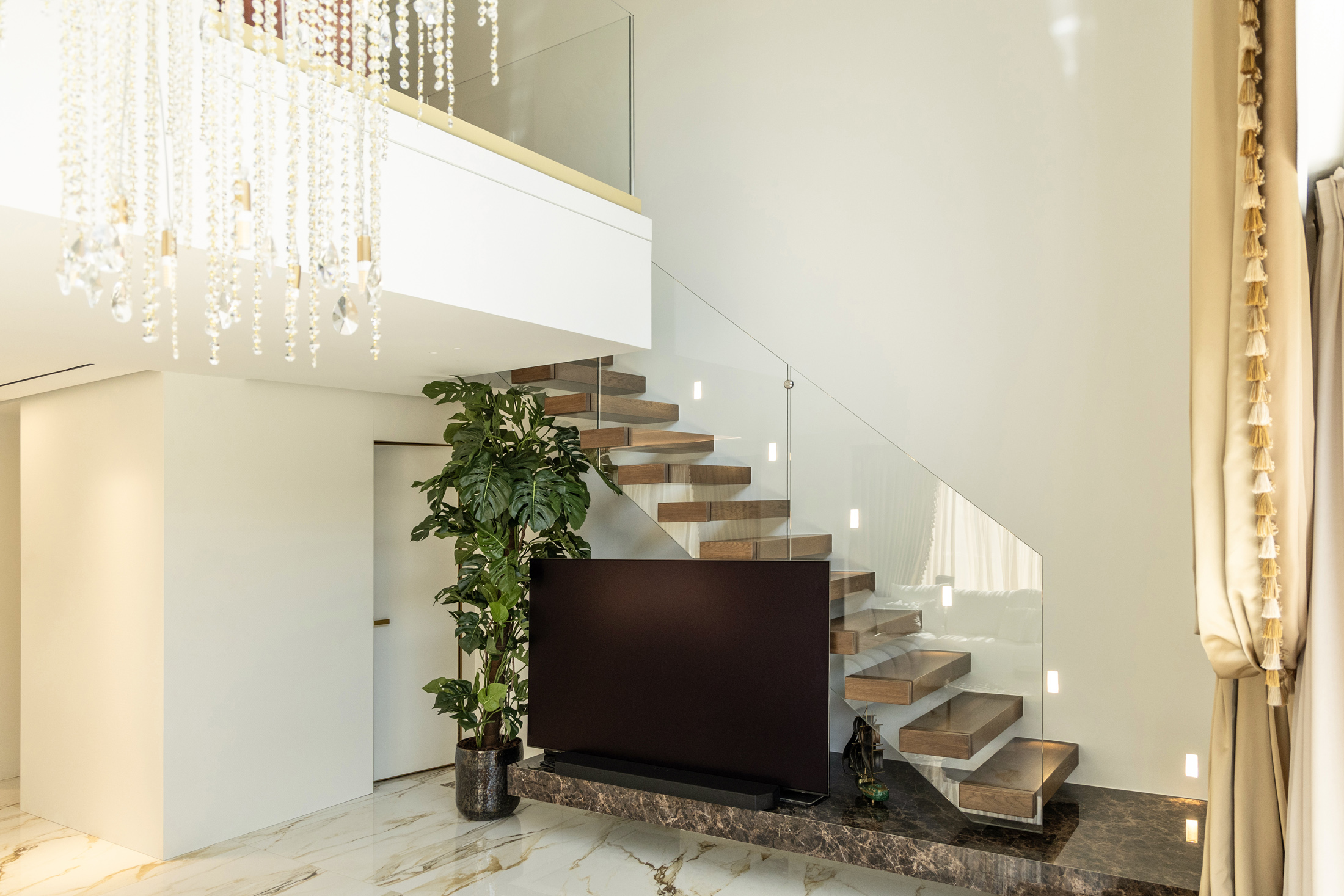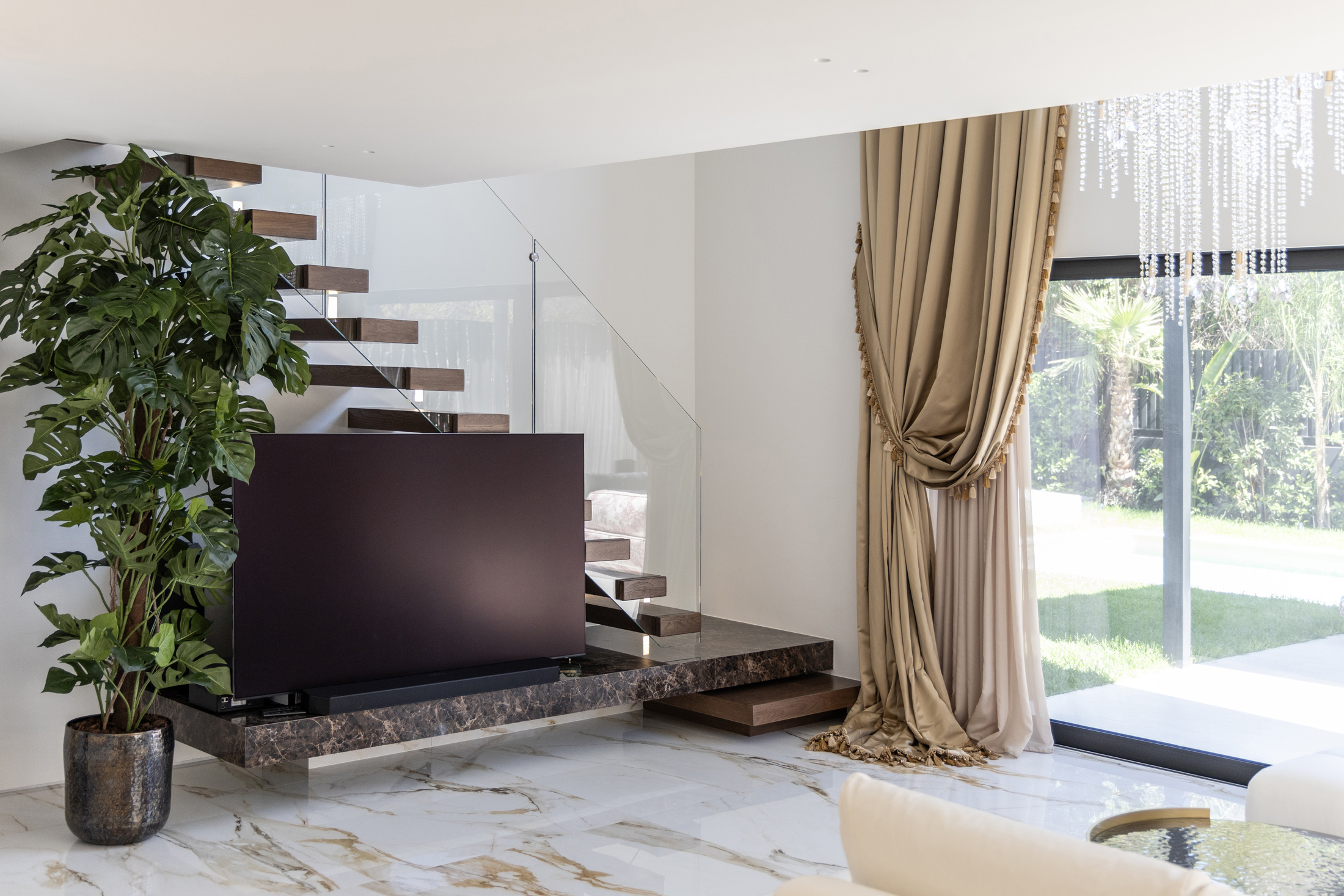 An additional feature integrated into the design is the water element both in private spaces in the form of a swimming pool or hot tub, and in public areas of the building with decorative waterfalls, as part of the design of the surrounding area, improving together with the green surfaces the living conditions in the building.