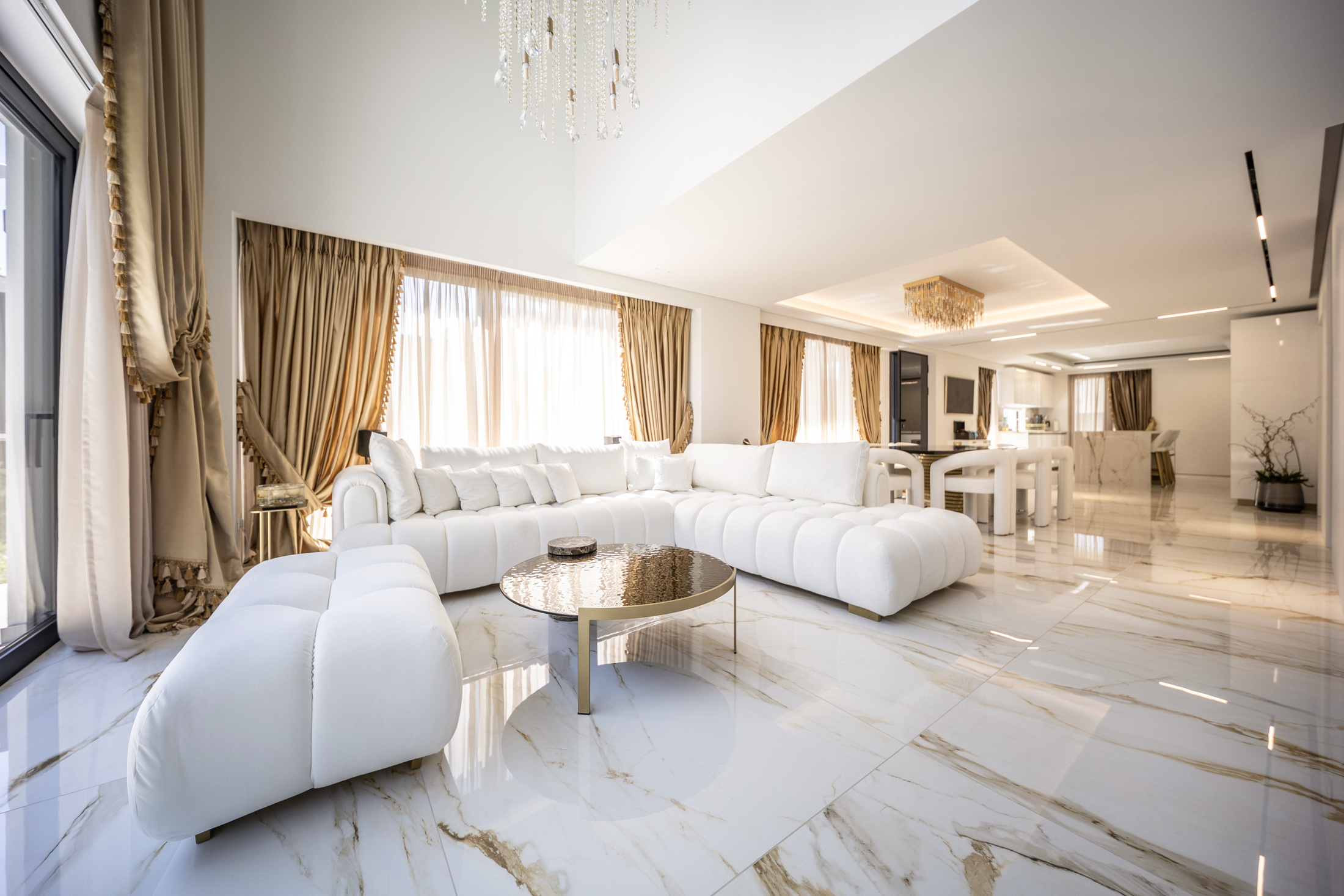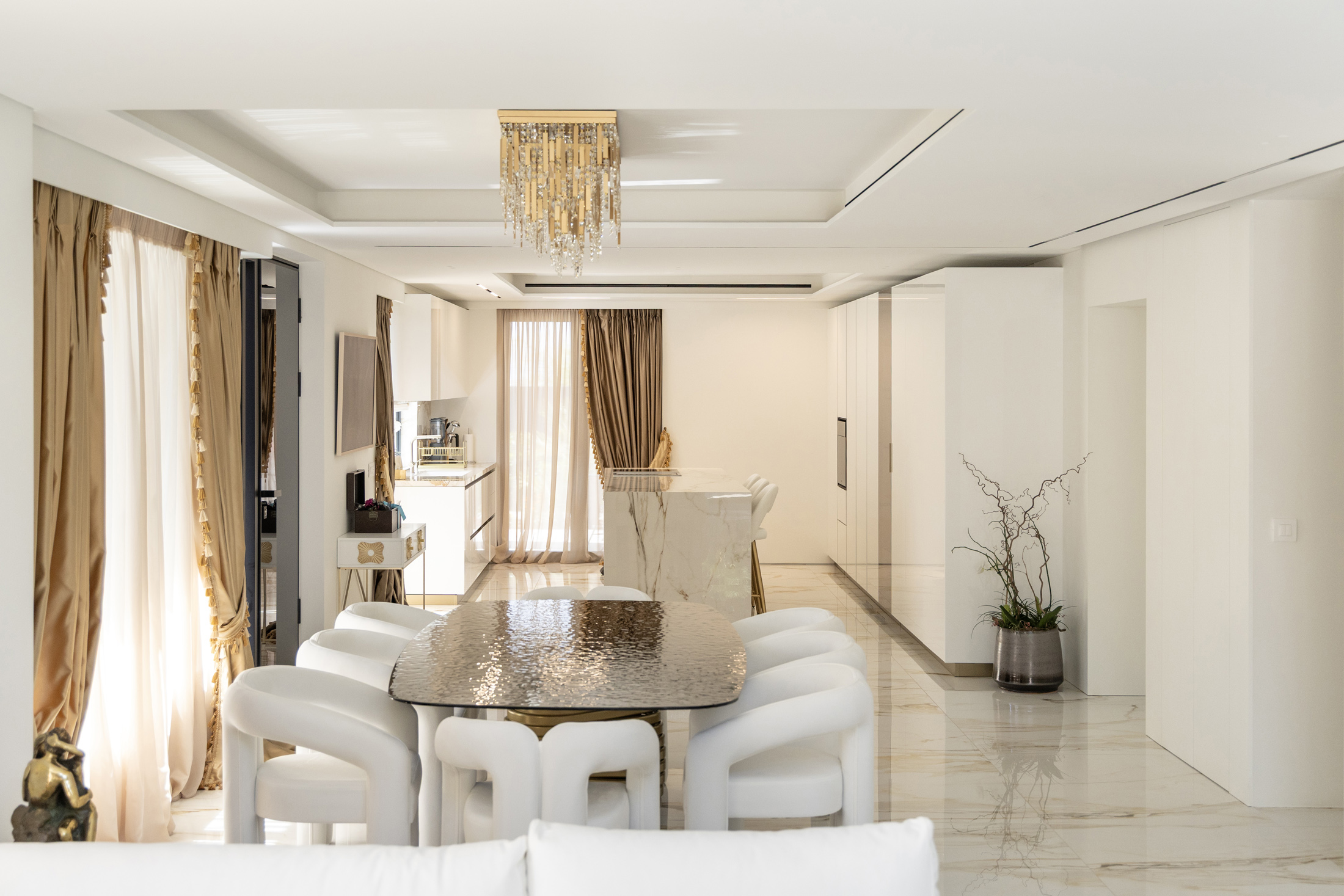 The property is located the last two floors of the building. With a total surface of 220 m2, the Penthouse consists of two levels, of 121m2 and 99 m2. Level 4 accommodates a living room, a large dining area, with a modern open style kitchen a WC, and 2 master bedrooms. Facing the Athenian Riviera, a big balcony offers amazing sea view. Level 5 includes a living room area, a secondary kitchen and the main master bedroom.
