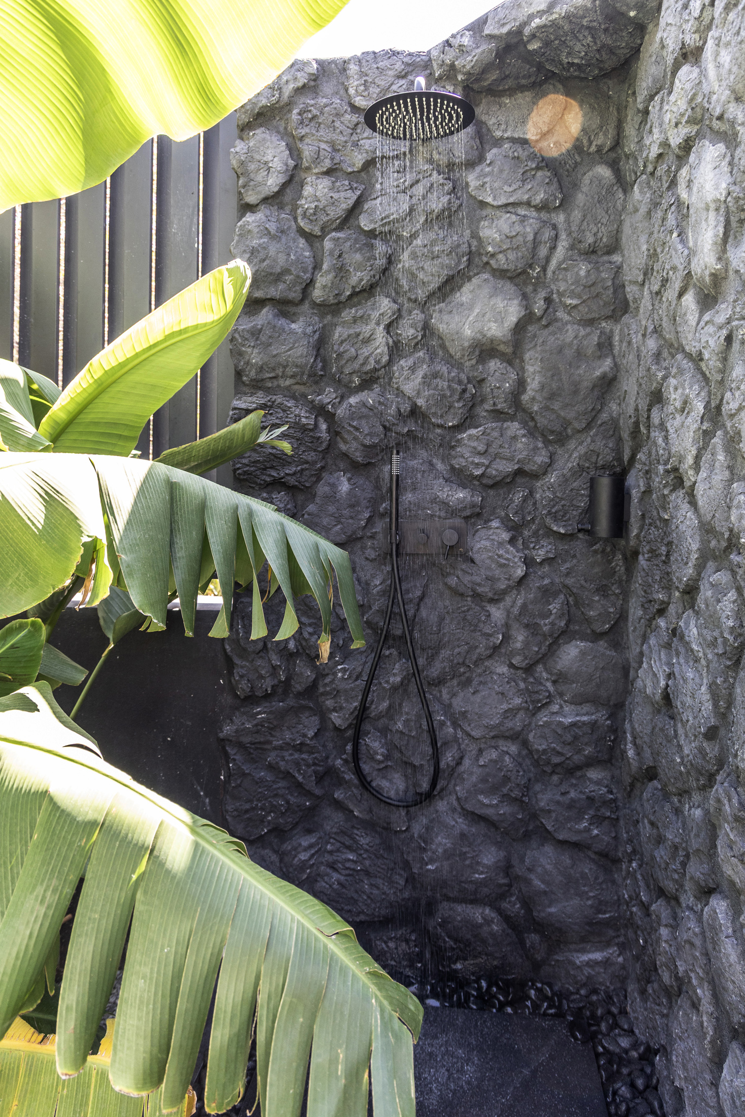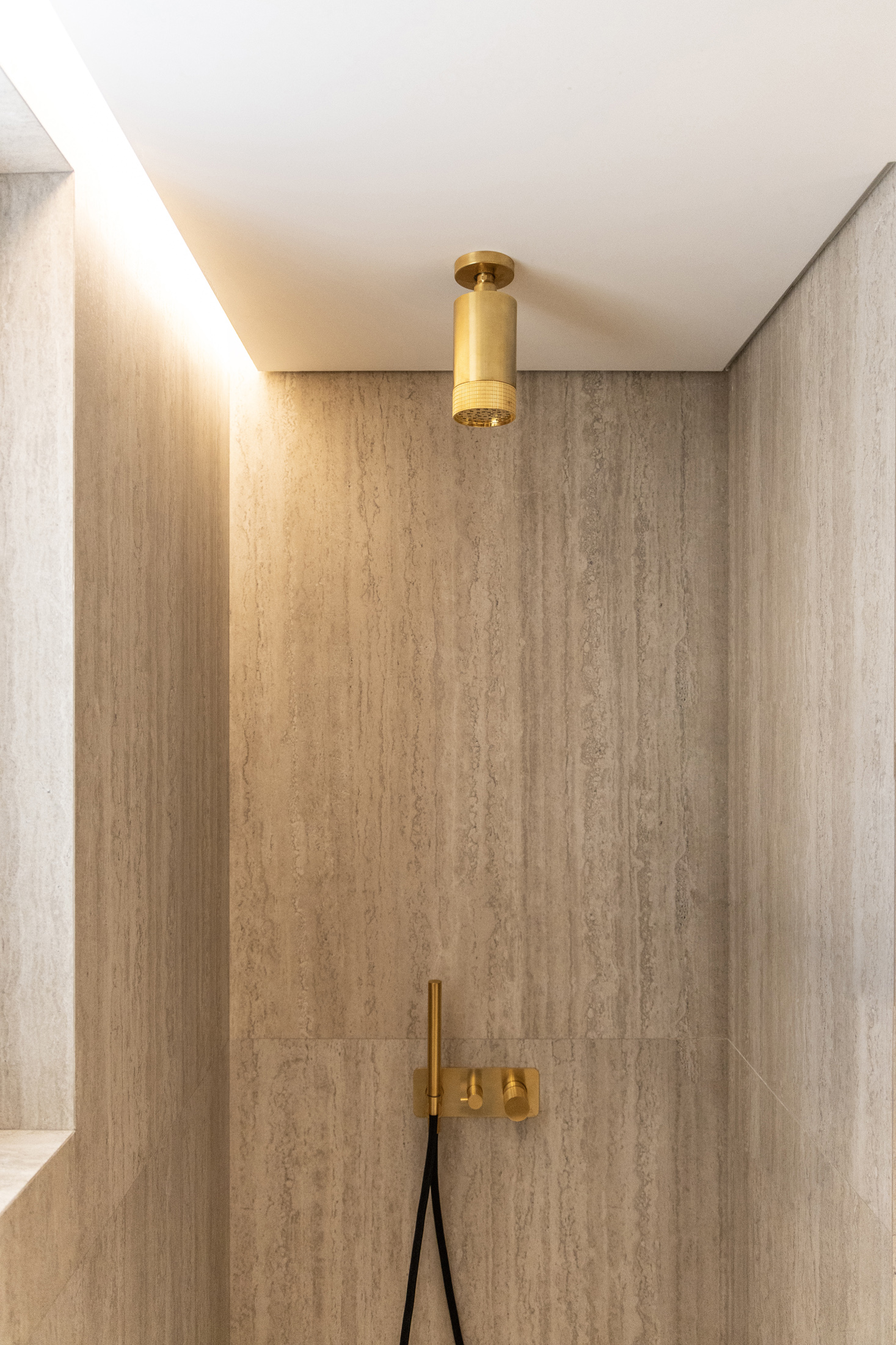 • Built-in shower set with removable head plate