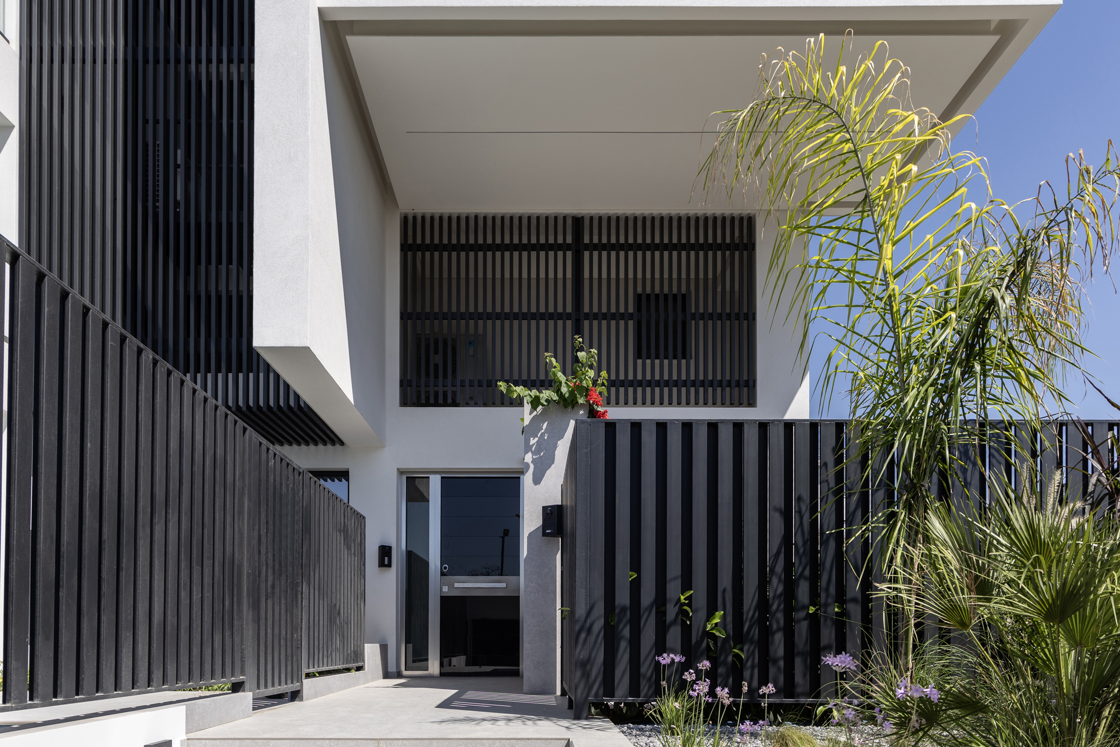 Considering the environmental conditions of the area, special emphasis was placed during planning on the application of bioclimatic principles. For this reason, movable blinds are placed on the facade of the building that mark the architectural form of the building while offering shading and privacy at the same time.
